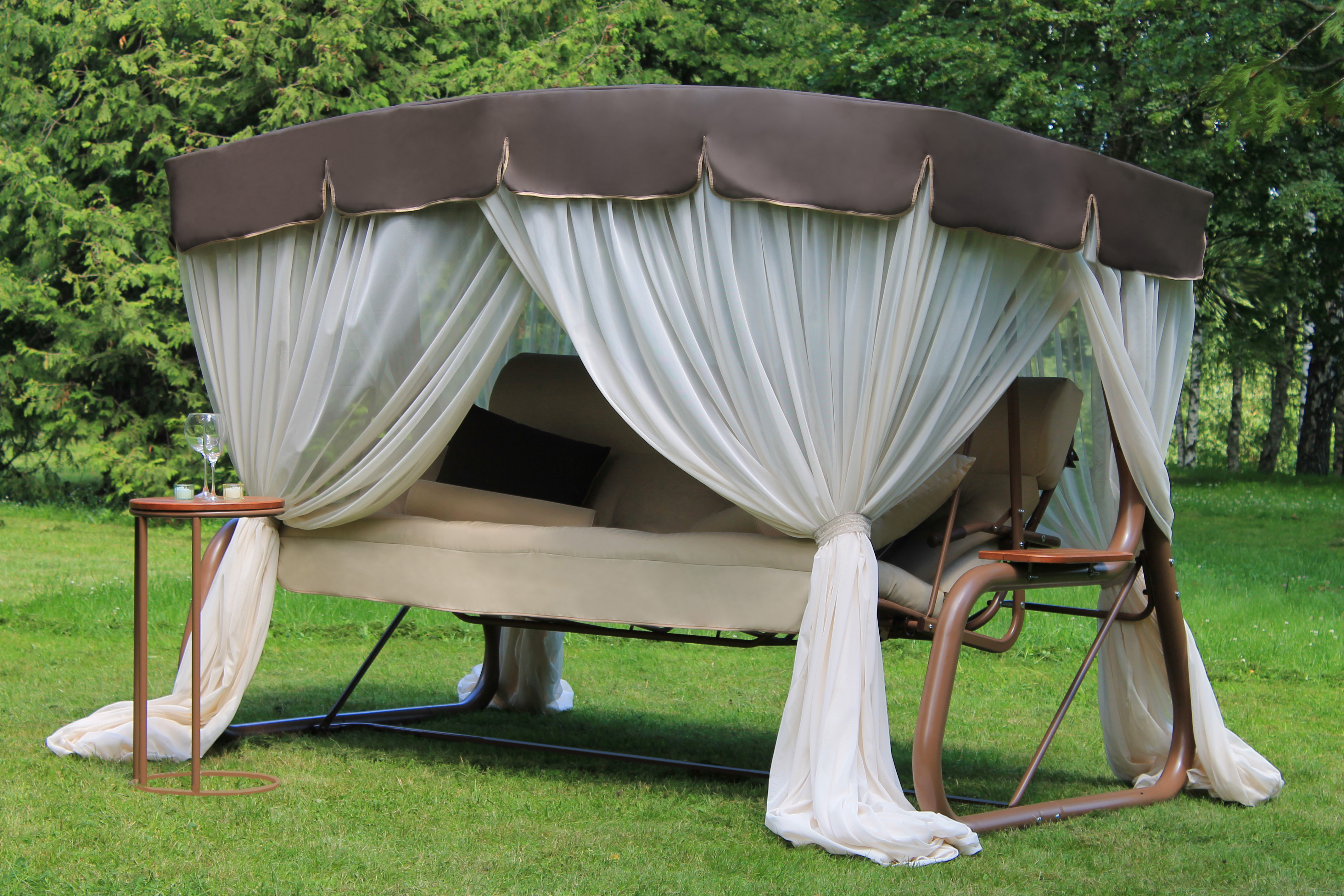 • мебель садовая, террасная для лаундж-зон и патио (качели садовые, перголы, шезлонги пляжные, шатры,