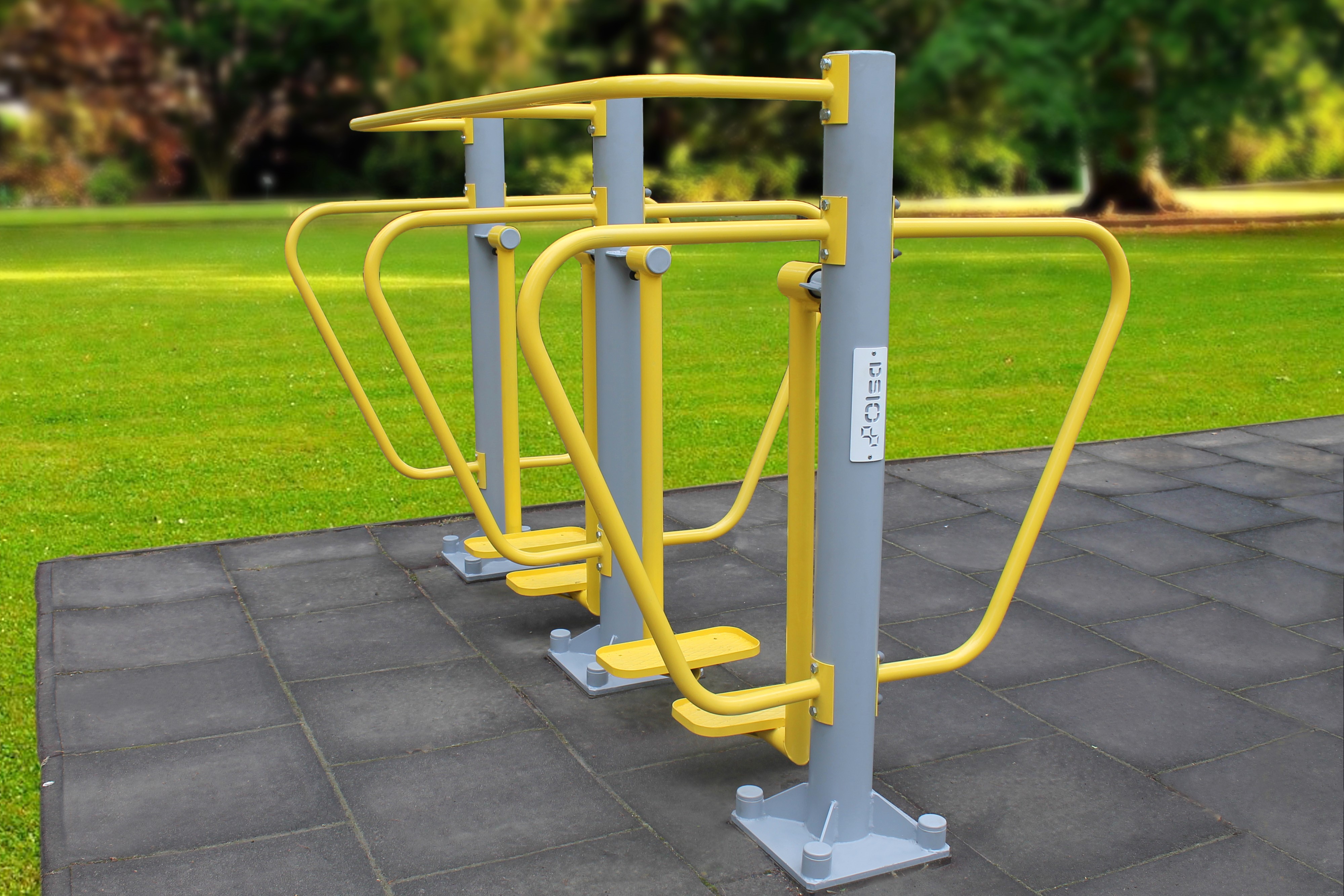 The material and design features of the exercise machine allow for intensive outdoor use for more than 12 hours a day. The supporting structure is made of 114 mm diameter pipe with a 4 mm wall thickness, VGP pipe with a wall thickness of at least 3 mm, and various rectangular profile pipes with a 4 mm wall thickness.