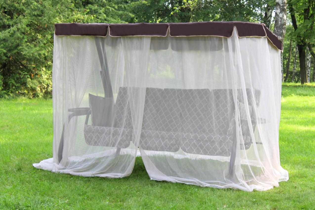 Тент: ткань с водоотталкивающей отделкой 100% п/э 180г/м2., сетка москитная (полотно гардинное) с напуском "запах" по 4-м сторонам, завязки из тесьмы окантовочной в цвет тента на боковых сторонах "сетки", сетка пришивная