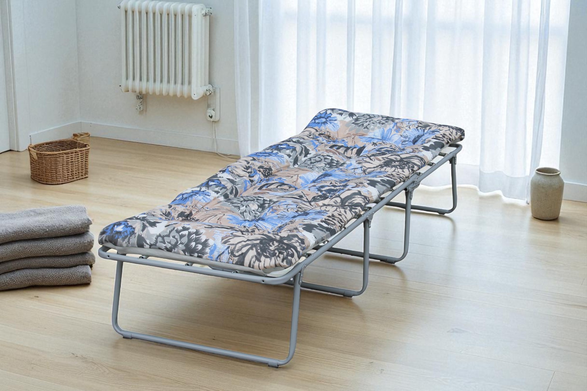 Матрас: ткань 45% п/э – 55% хлопок, плотность 108 – 111 г/м2, полипропилен, наполнитель матраса крошка поролона, крепление к каркасу осуществляется с помощью пружин.