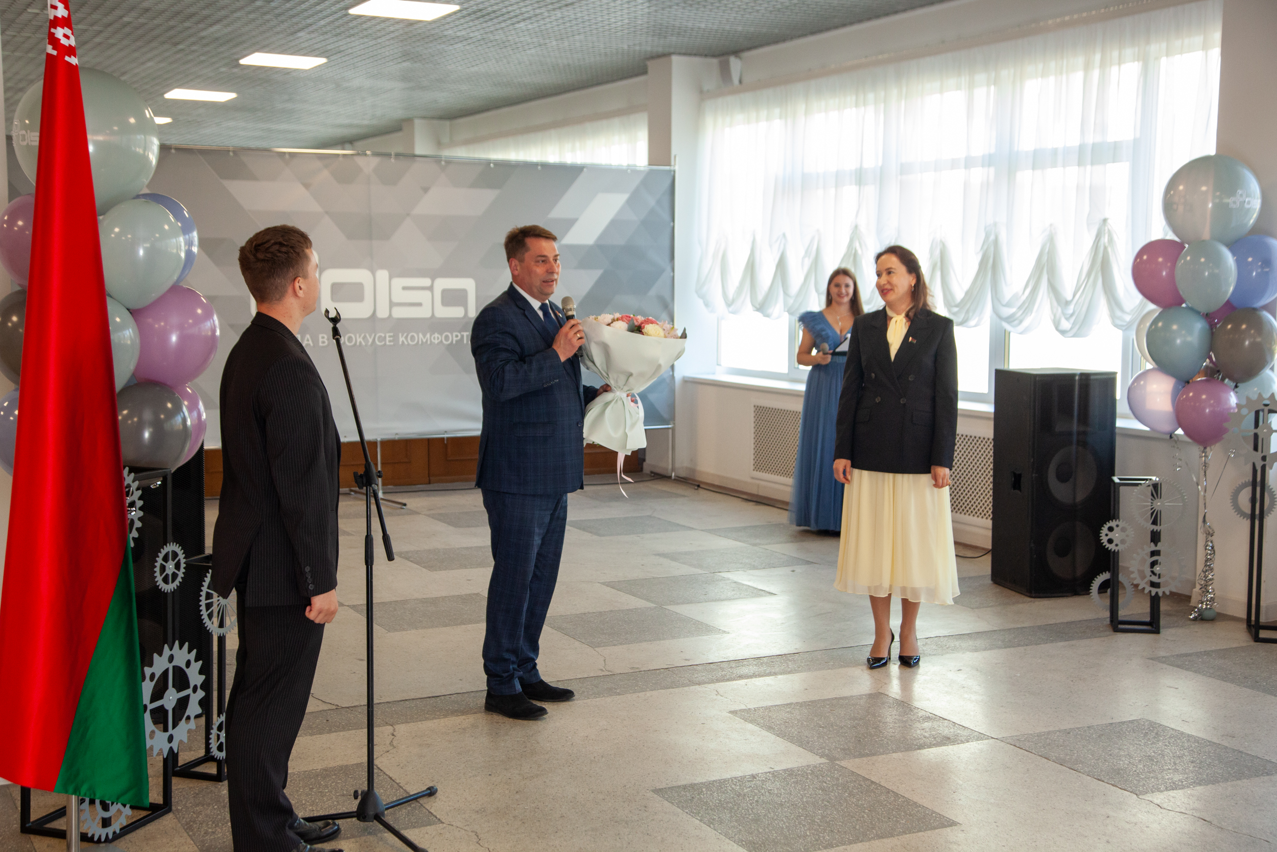 Председатель Наблюдательного совета общества Николай Цыкунов зачитал коллективу приветственный адрес от имени Министра промышленности Республики Беларусь Андрея Кузнецова и от себя лично поздравил работников с профессиональным праздником, выразил восхищение тем, как сегодня развивается предприятие, пожелал всем успехов и благополучия!
